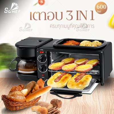 เตาอบ 3 in 1 เตาอบตั้งโต๊ะ เตาอบอเนกประสงค์ เตาอบ ชงกาแฟ กระทะทอด Breakfast Maker เครื่องทำอาหารเช้า ความจุ 9 ลิตร สามารถเช็คคะแนนและรีวิวจากผู้ซื้อคนอื่นๆ สามารถเก็บเงินปลายทางได้ มีสินค้าพร้อมส่ง